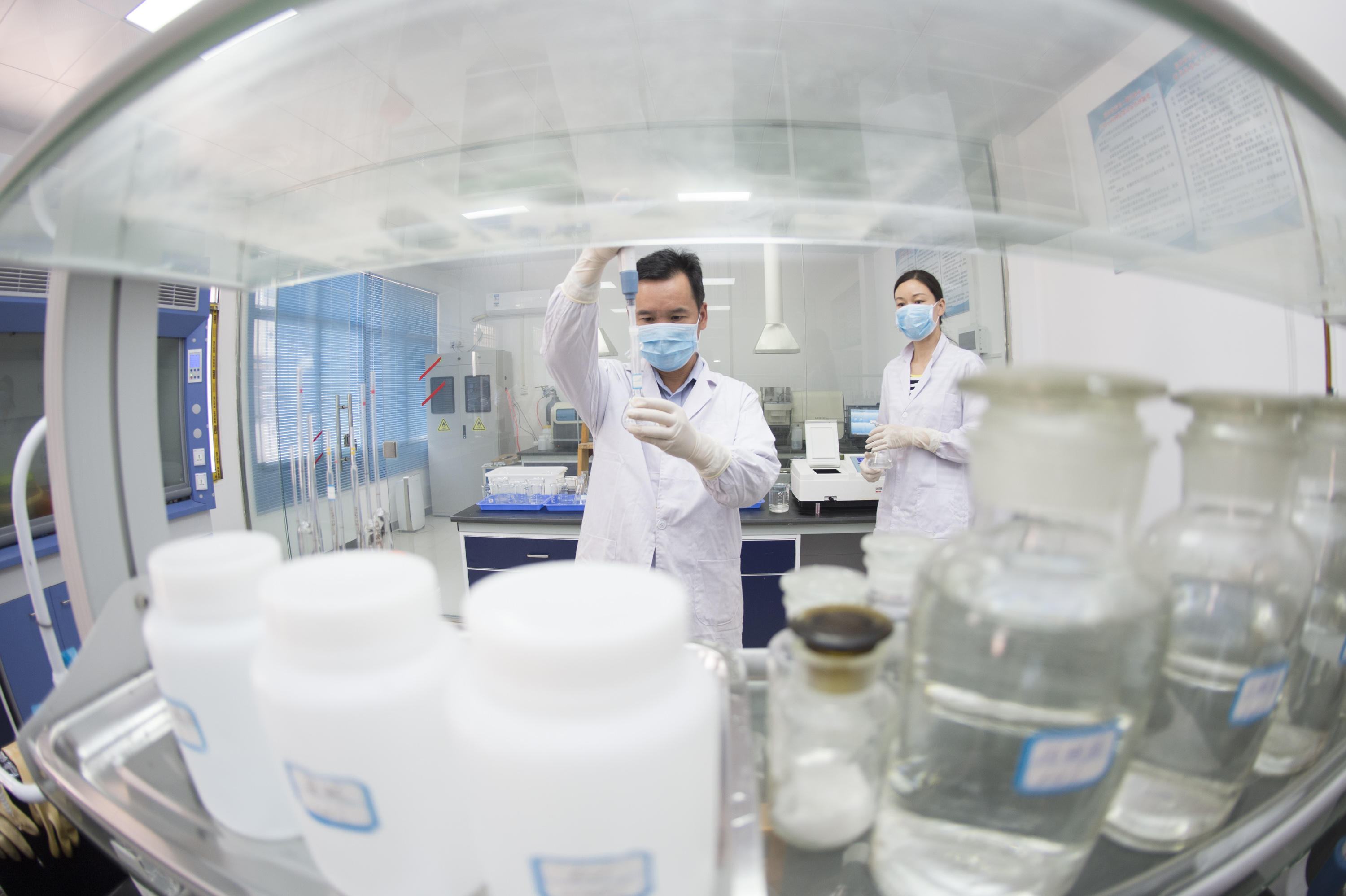 黄麦岭公司着力农化服务,拓展竞争优势,2016年建成投用国内高端土壤实验室,服务农业生产,促进农民增收。图为公司技术人员正在进行土壤成分分析。