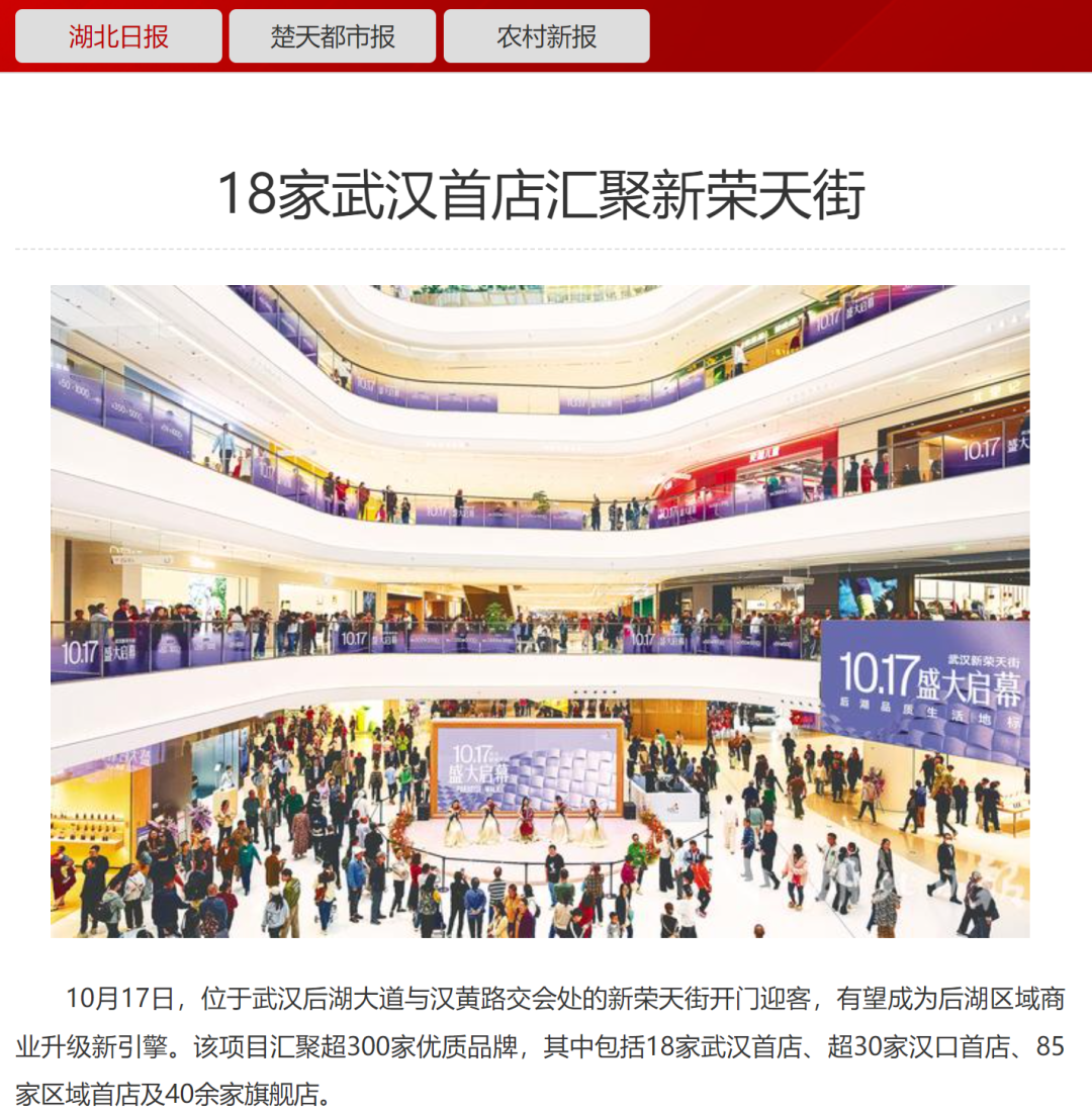 湖北日报:两个月上新三座商业体 pa集团官网商业生态刷新城市幸福感